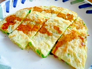 焼き色がついたら裏返し、再び蓋をして蒸し焼きにし、お好み焼きソース、マヨネーズをかけ、かつおぶし、青のりをふったら完成です。